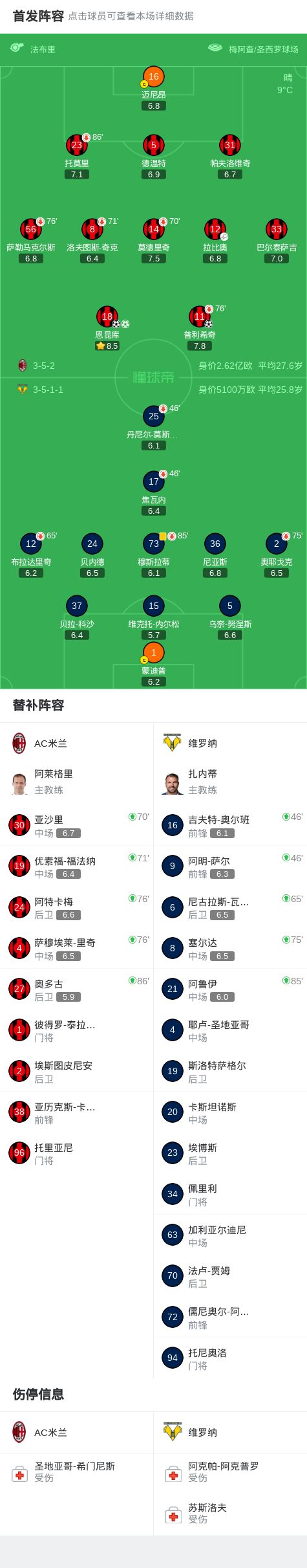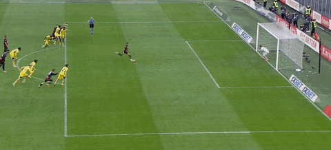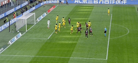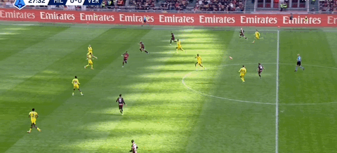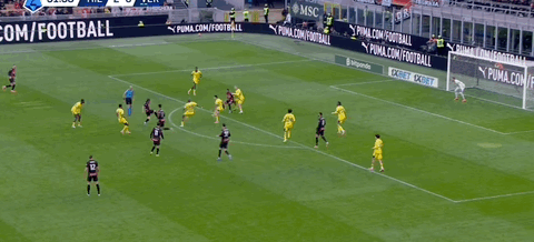 第45分鐘,拉比奧頭球擺渡,普利希奇后點推射破門,米蘭1-0領先